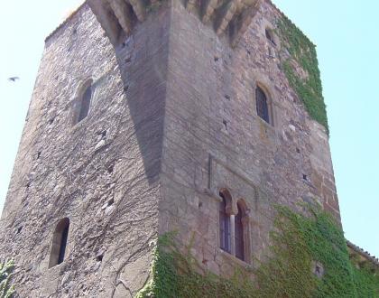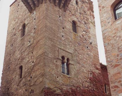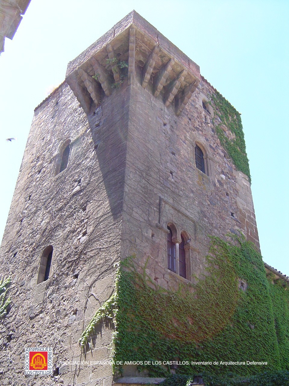Torre con matacán esquinado con mucho vuelo, aunque carece de almenas, cuatro plantas y diferentes vanos y saeteras. Esquinas en sillería