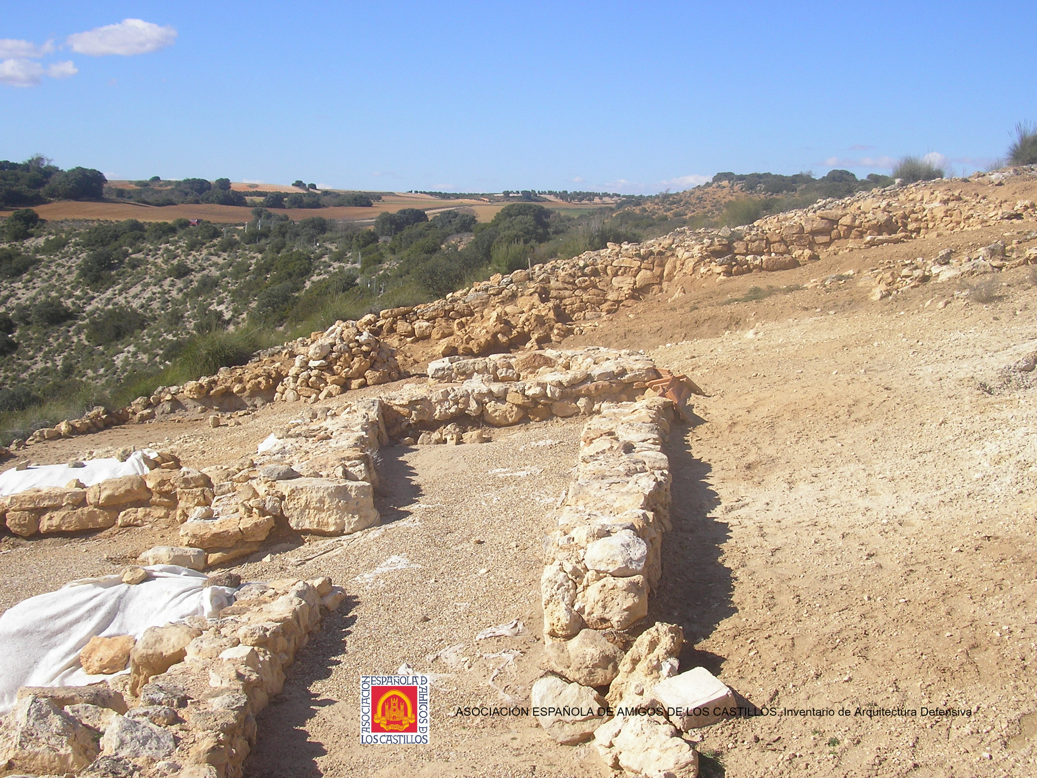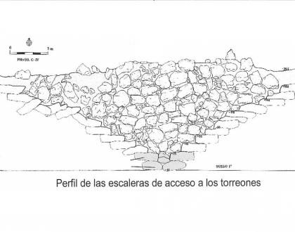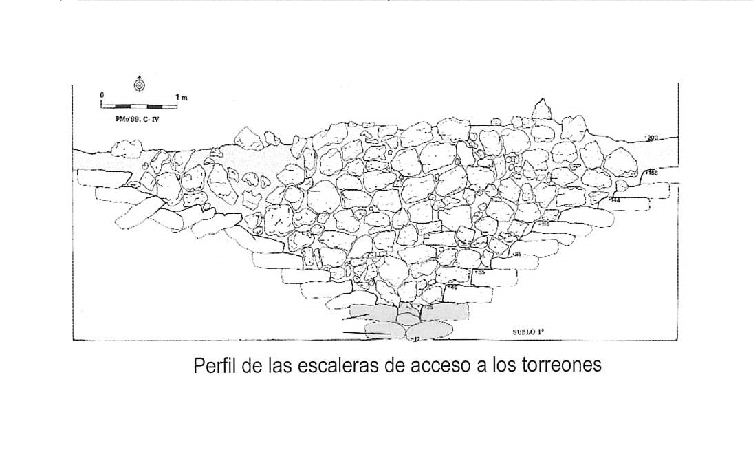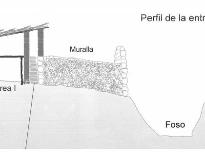 2 fosos y muralla perimetral, más muralla interio en la entrada con 2 m. de alto, cuerpo de guardia y escalera