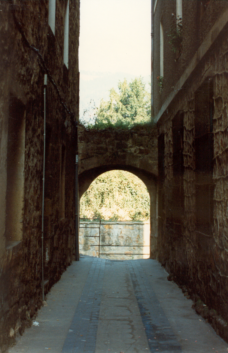 Datos Historia Esta Puerta es, junto con la del Campo y algunos exiguos restos, lo único que queda de la muralla elorriana. Su arco de medio punto nos parece llevar a una construcción de principios del s. XVI. Hoy se encuentra descontextualizada, embutida entre dos edificios, y sin salida a ninguna vía, pues da directamente al río Zumelegui