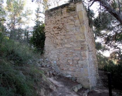 Gran torre y restos de la muralla del recinto.