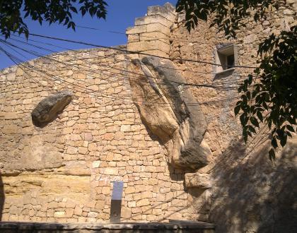 Restos de murallas, contrafuertes y bases de torres, restos en las viviendas del centro urbano.