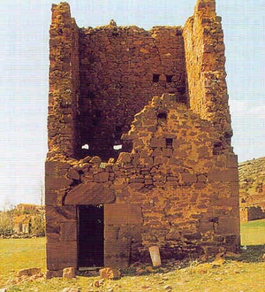 Dos torres cuadradas de 6 y 5 metros de planta respectivamente con saeteras que serían la primera línea de defensa.