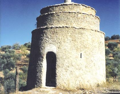 Torre de planta circular, de 5,25 m de diámetro y desarrollo cilíndrico, bóveda interior y puerta de acceso, paramentos sin huecos al exterior.