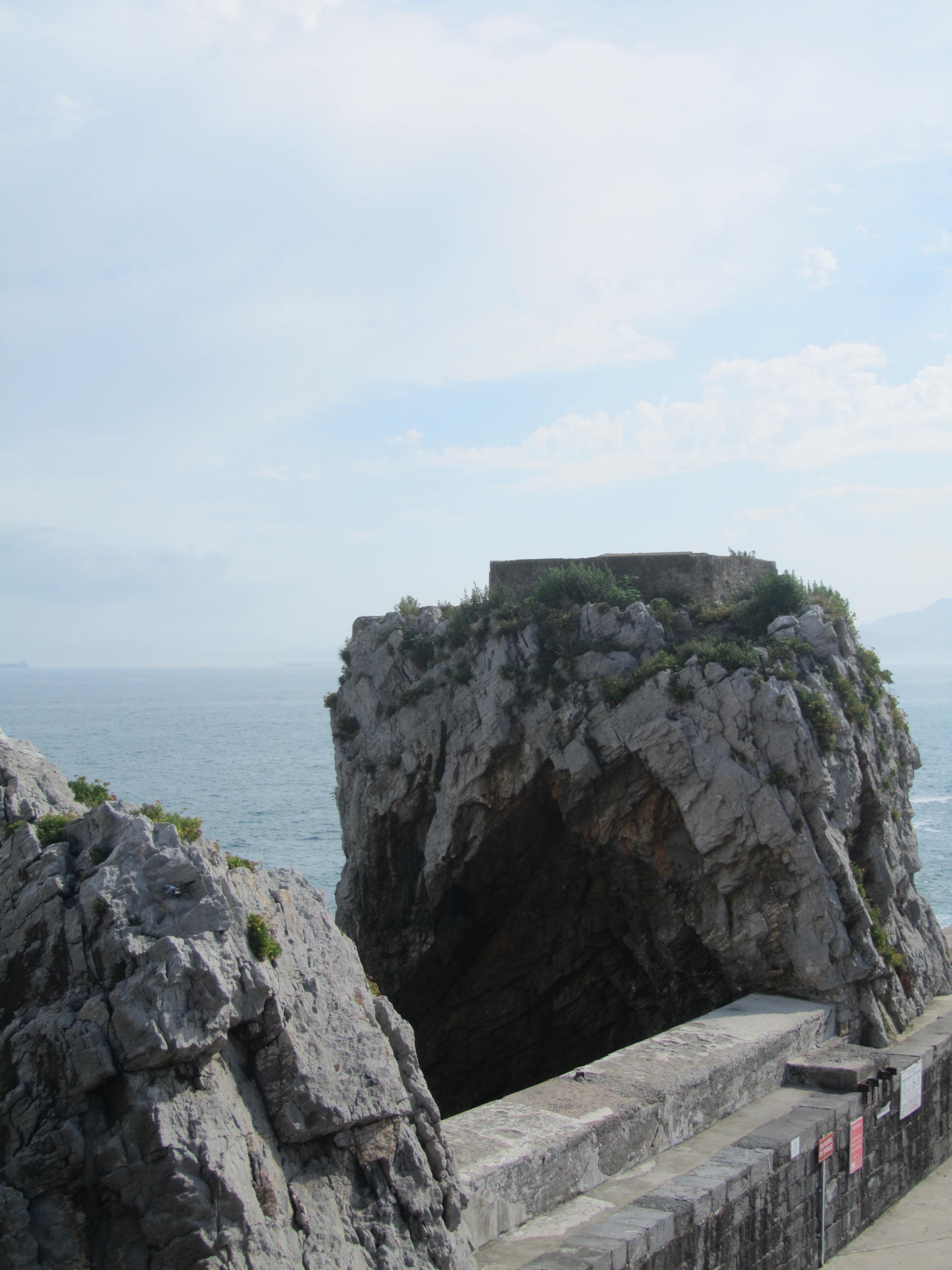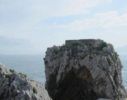 Pequeño edificio rectangular se asienta sobre un peñón que se encontraría unido en su día a otro cercano, posiblemente por un puente similar al que se conserva. En este segundo peñón aun se conserva una escalera en un lateral -junto al puente gótico- que daría acceso al arco desaparecido que conducía al fortín. Actualmente se encuentra sin acceso y los peñones han pasado a formar parte del espigón.