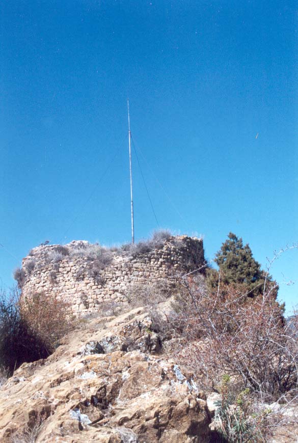 Quedan restos de una torre y parte de un muro. La torre es de planta circular.