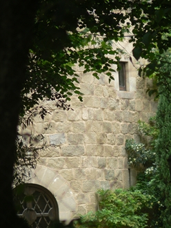 Torre en el lado opuesto a la entrada, torres de entrada (del siglo XIV), adosada una galería gótica en el siglo XIX.