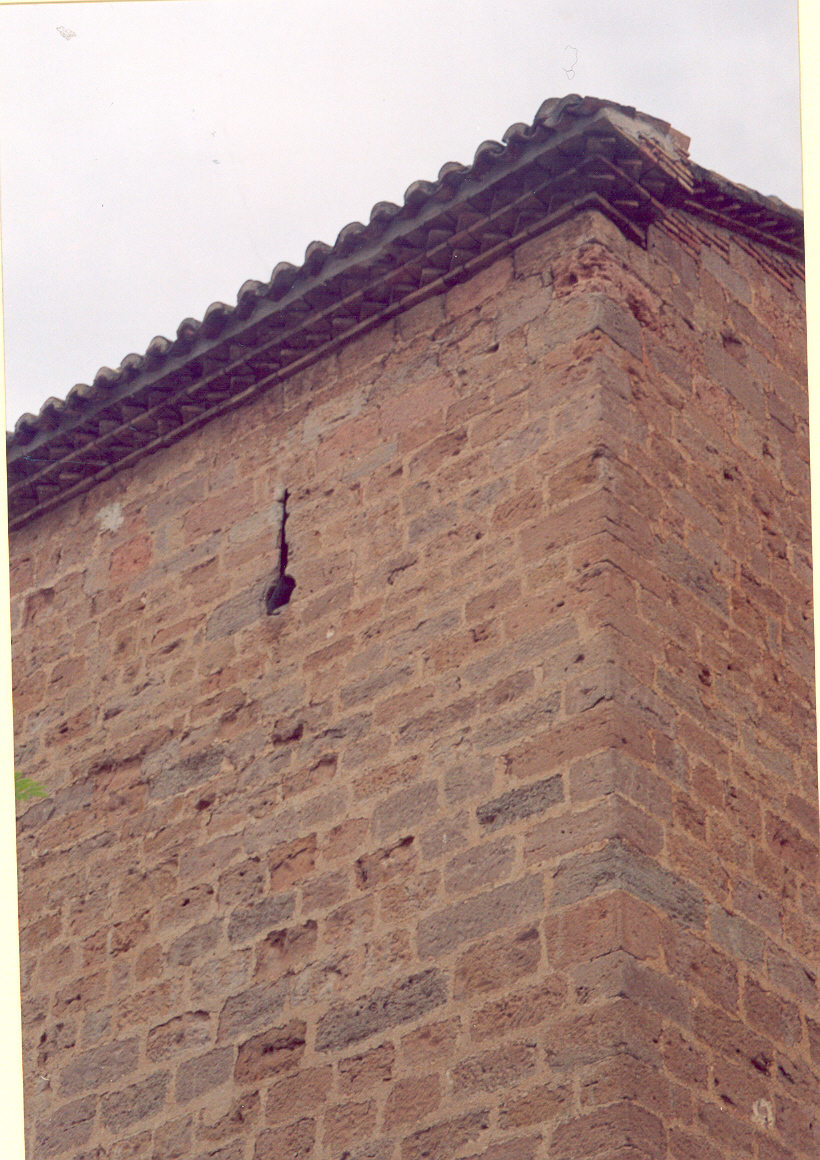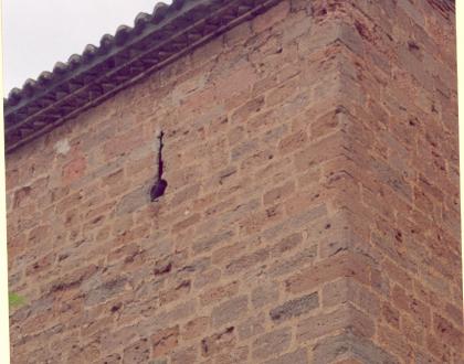 En una de sus paredes se encuentra una saetera alargada defendiendo la entrada desde la población. A parte conserva un recinto con un arco, todo almenado.