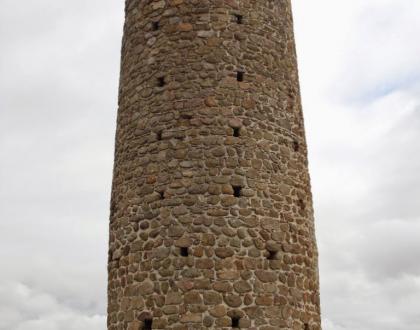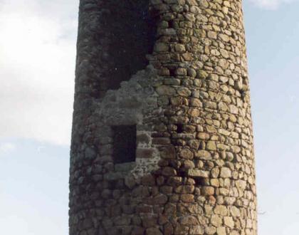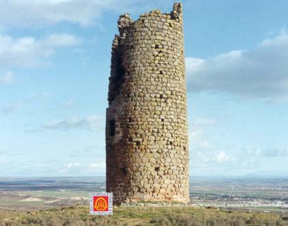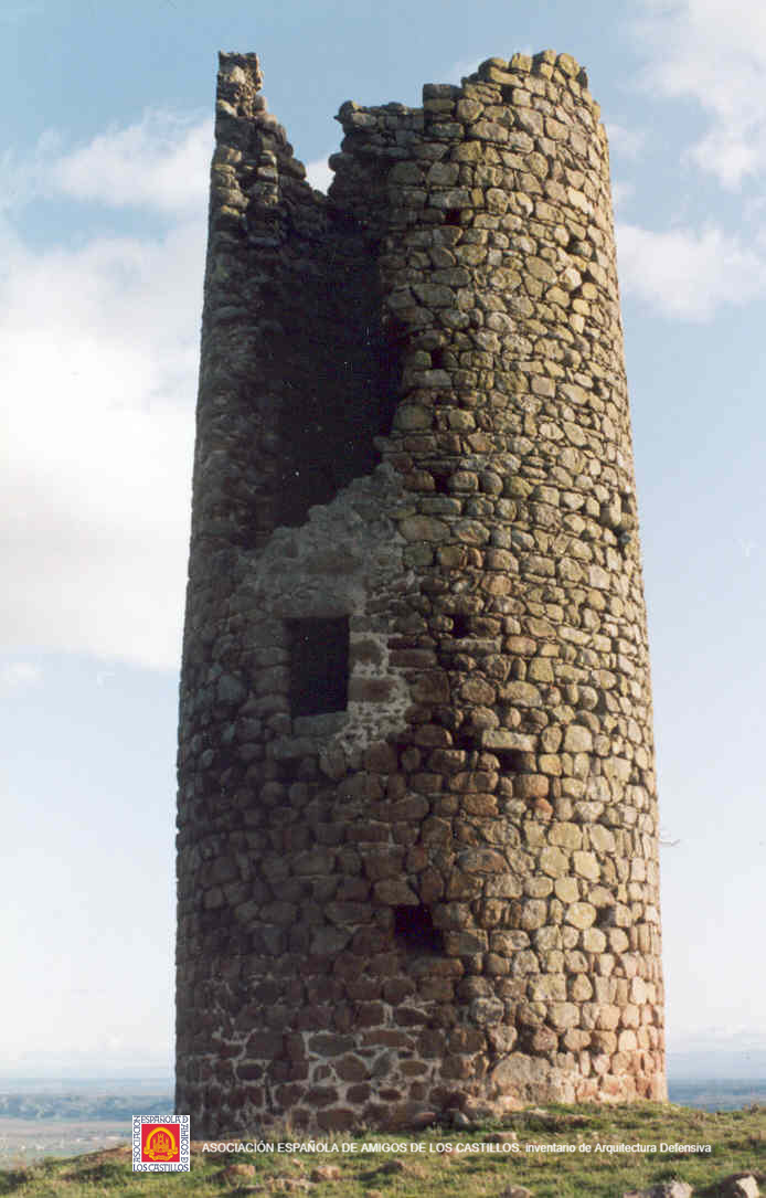 Torre de 25 m. de altura, conserva la puerta de entrada, ventanas de sus pisos y parte del coronamiento almenado.