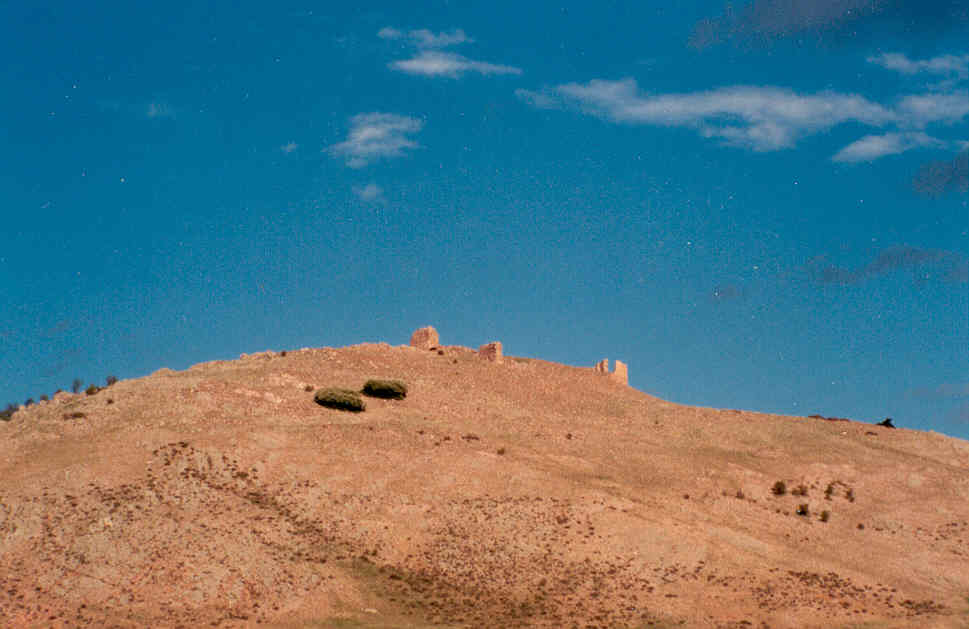Restos del recinto con saeteras y la base de un torreón cuadrado