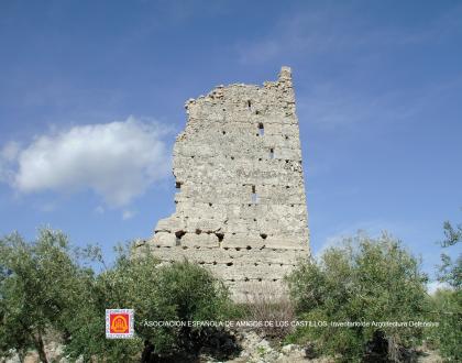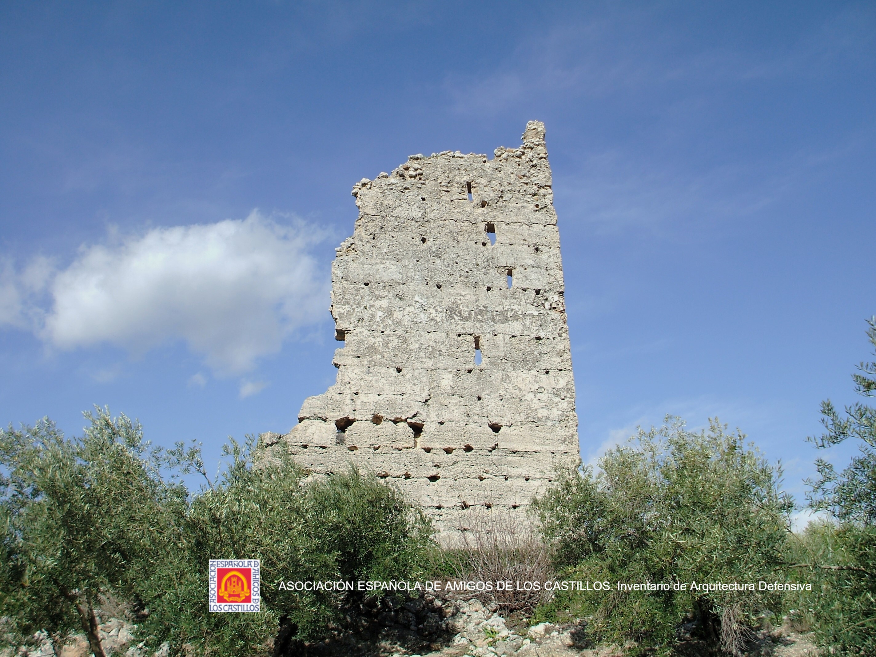 Lado de 9,60 metros, perdurando un solo lienzo de 9 metros de altura con cuatro saeteras, estuvo dotado de tres plantas. Los ángulos de la torre reposan sobre piedras esquineras de gran tamaño, bien labradas.