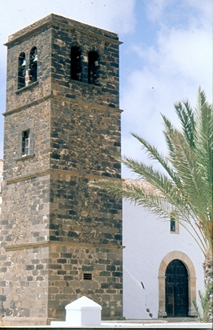 La torre-campanario aprovecha una torre militar anterior, a la que corresponderían al menos los dos cuerpos inferiores. Aprovechada para la iglesia continuó teniendo función de atalaya y de defensa ante los frecuentes ataques de los piratas berberiscos.