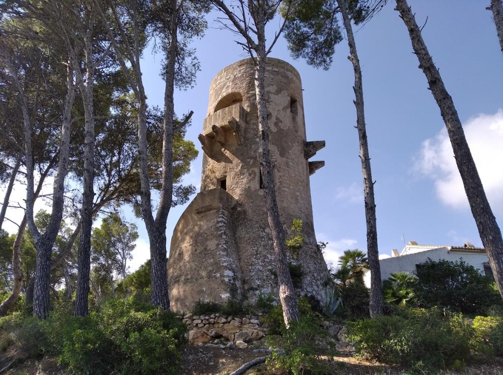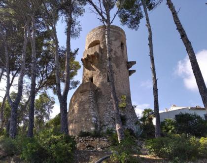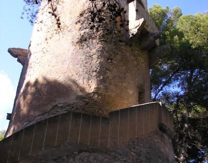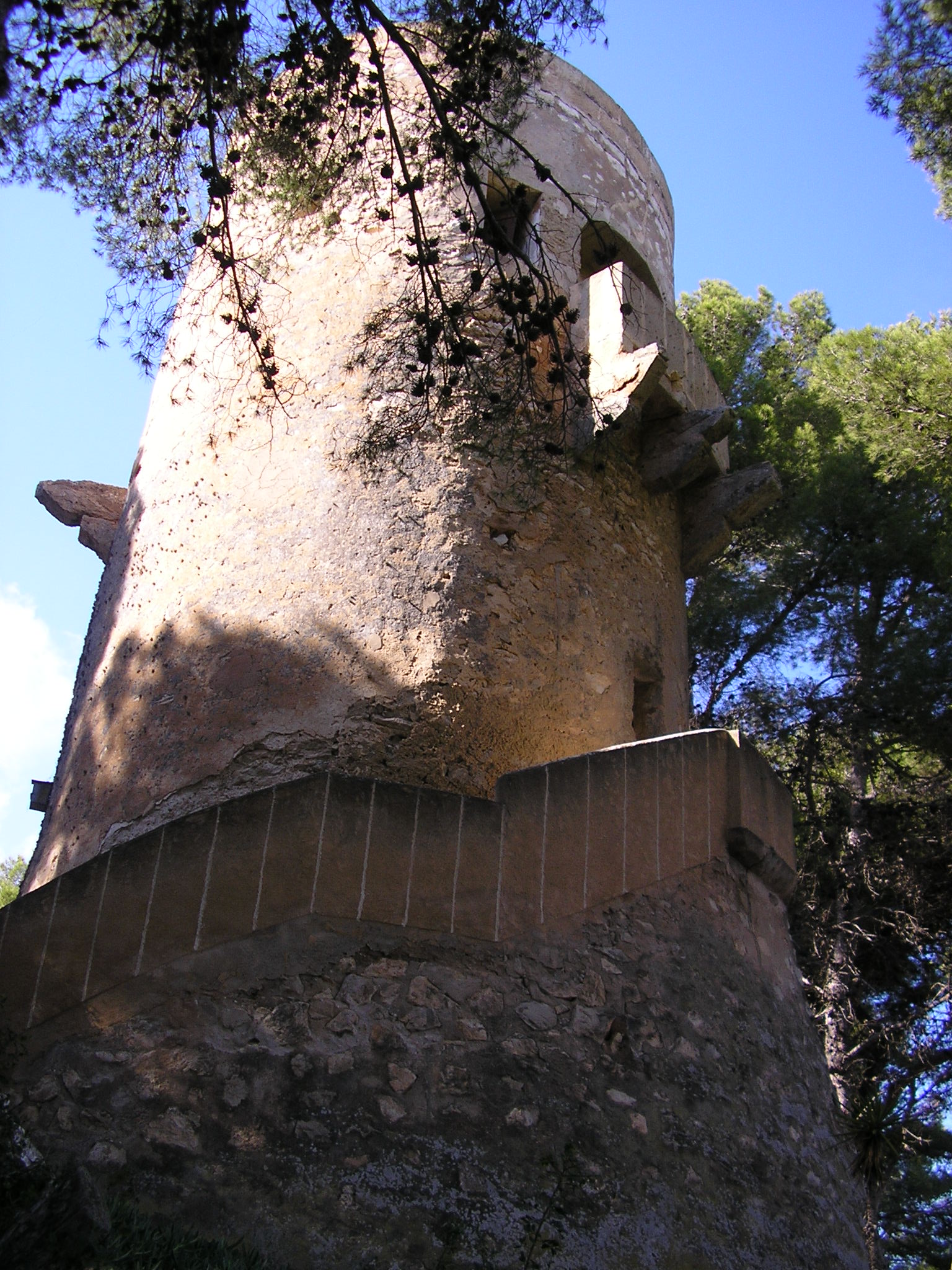 Típica torre de defensa costera, troncocóncia, con terraza y balcones amatacanados