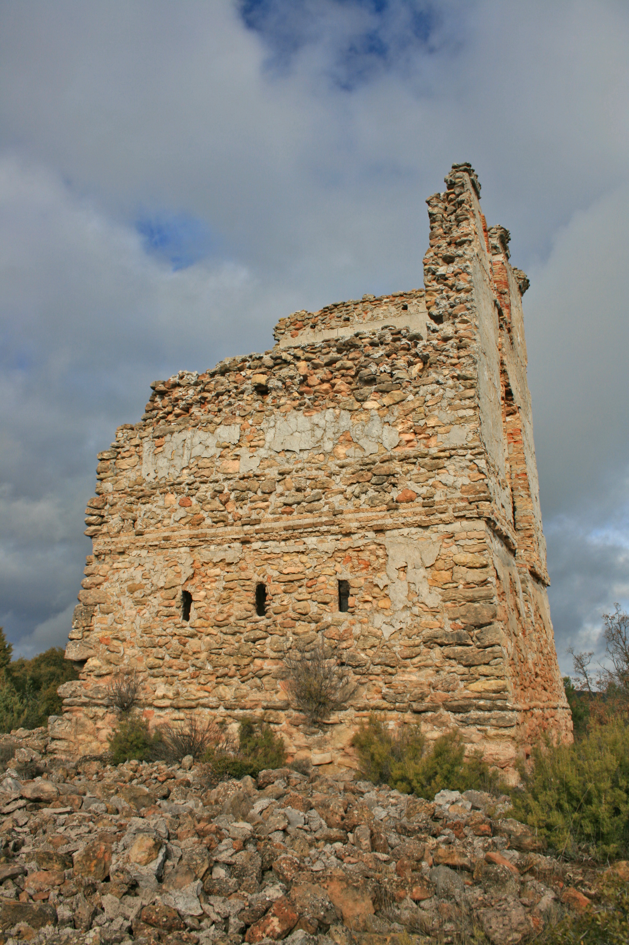 Torre cuadrada de 3 pisos.Su fábrica es de mampostería trabada con argamasa, con mampuestos en las esquinas. El bajo es ciego y ataludado con 3 aspilleras en cada uno de sus lados. El segundo piso tiene la entrada en alto a la que se accedía por medio de una escala escamoteable. En el tercer piso hay 2 ventanas y la máquina se montaba sobre la azotea.Conserva las 4 caras con derrumbe parcial en la fachada occidental. Techo y plantas interiores perdidas. Ruina progresiva.