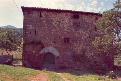Acceso ojival laterizado con dos aspilleras. Segunda planta con dos vanos conopilaes y aspilleras. Tercer piso con aspilleras. Cubrición a cuatro aguasBonita torre palacete rural, que reserva la sillería arenisca para la fachada principal, las esquinas y los vanos, siendo el resto de mampostería. Conserva su acceso apuntado para la planta baja, algunas saeteras para iluminación, y dos bonitos ventanales adintelados rematados en conopios, y con decoración de bolas