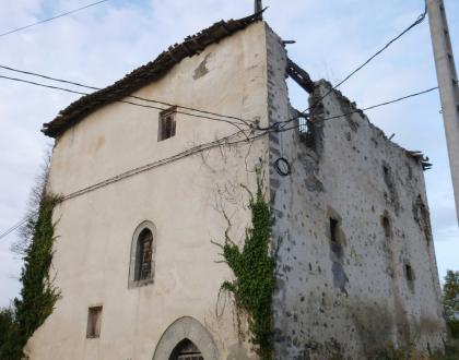 El grosor de sus muros alcanza 1,15 m, guatro garitones curvos en cada ángulo. Modificaciones posteriores ocultan la puerta principal de arco apuntado.