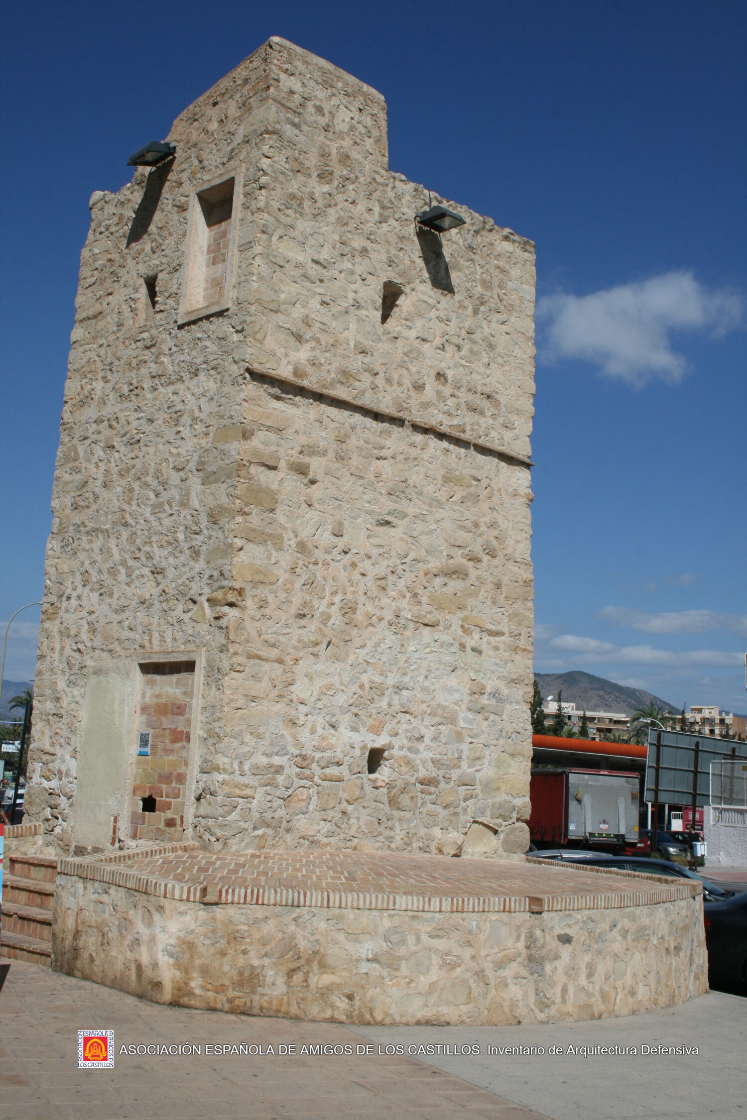 Torre cuadrada de mampostería con sillares esquineros, acceso en alto, desmochada.