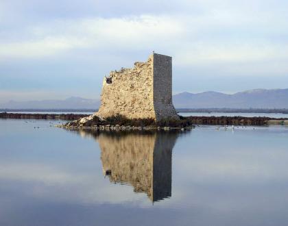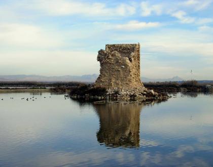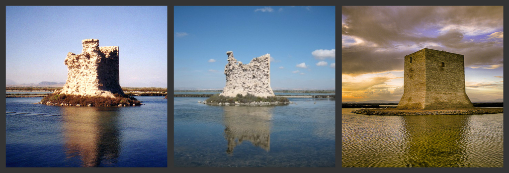 Construida en 1552. Torre de defensa costera, complementaria del castillo de Santa Pola. Su función es facilitar la comunicación entre el castillo de Santa Pola y la torre de Pinet, ya que se encuentra situada en las salinas, entre ambas fortificaciones.