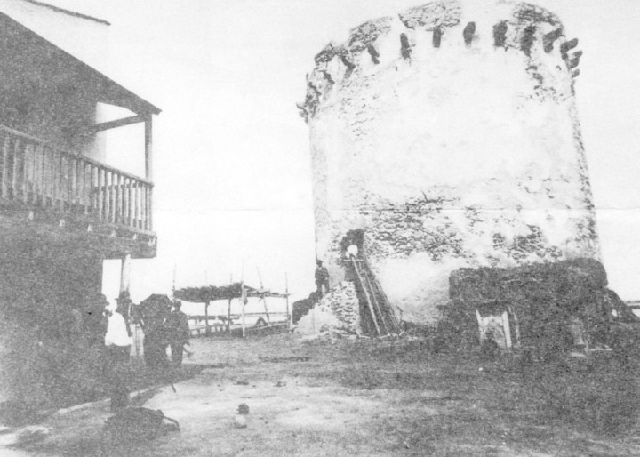 Tiene 12 metros de diámetro en su base, con una altura de 13 metros. Se compone de dos pisos cubiertos por bóvedas y una plataforma en la parte superior preparada para recibir 5 piezas de pequeño calibre. Para comunicarse un piso con otro hay una escalera de caracol embebida parte en el muro y hecha de ladrillo. Según noticias adquiridas en otra época existía un aljibe pero en la actualidad no hay indicios de semejante obra. Se entra en ella por una puerta abierta en el 1º piso a 3 metros de altura sobre el terreno natural. Los muros están construidos con mampostería y las bóvedas con ladrillo. Toda la obra se halla en muy mal estado.