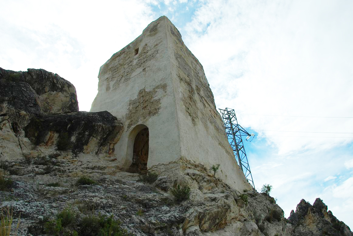 Su planta es de casi 40m2 de forma trapezoidal. Conserva los muros de casi 1 m. de espesor y tres plantas.