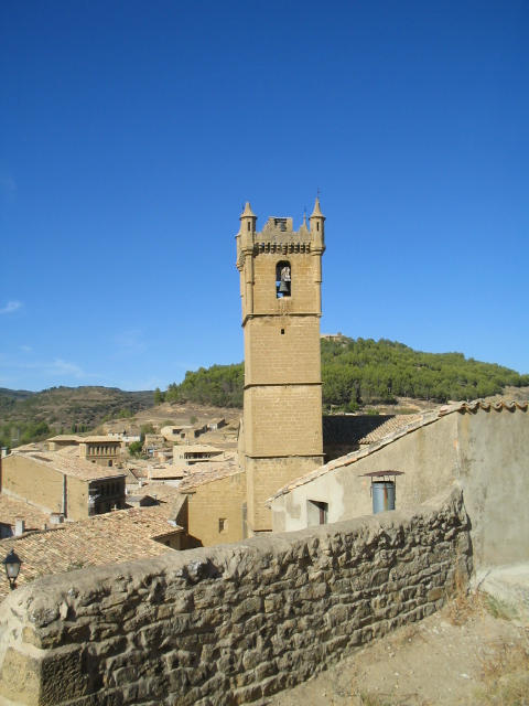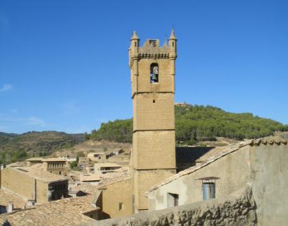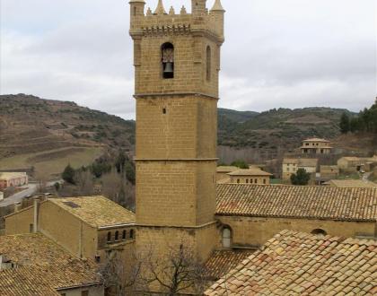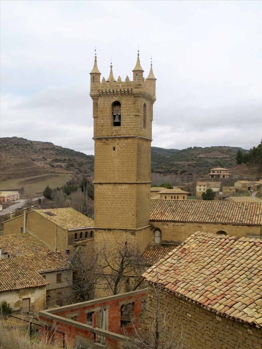 La torre de la iglesia es un elemento claramente defensivo, provisto de saeteras y con función de albarranas. Aunque el templo es del siglo XII, la torre fue consecuencia de la reforma del siglo XVI. La torre es de planta cuadrada de gruesos muros de sillería entorno a un machón central que contiene una escalera helicoidal.