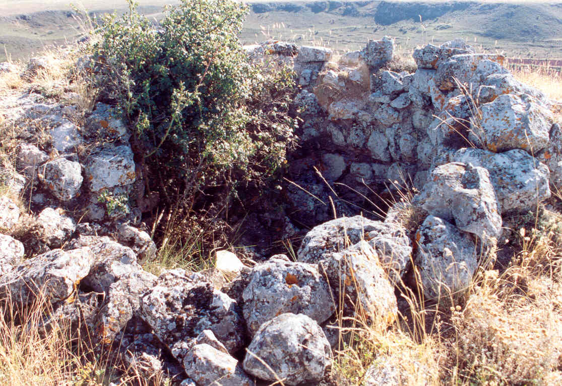 Conserva 1'55 m de altura, con un nperímetro de 8'9 m y un grosor de 60 cm.