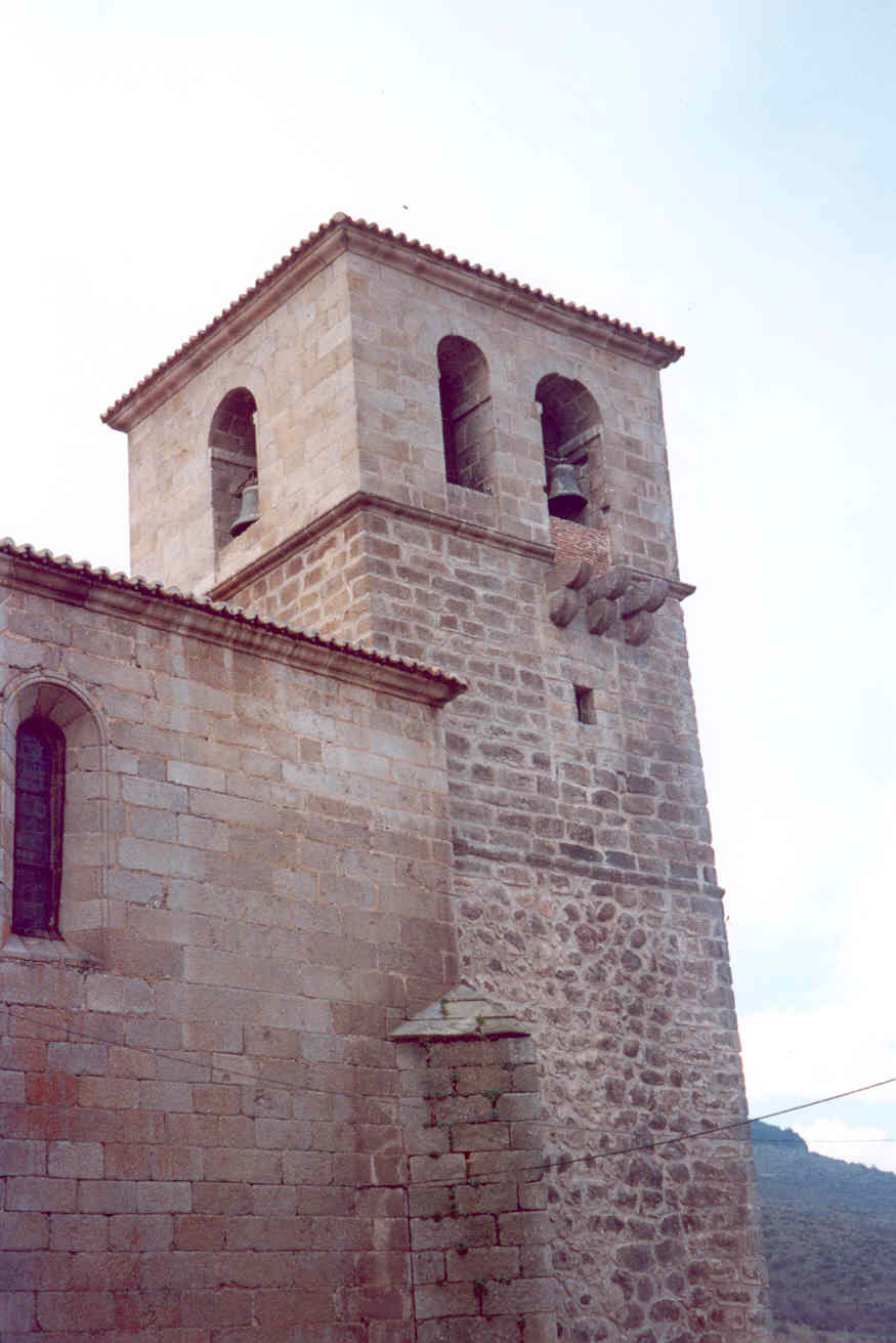 Iglesia de tres naves con grandes arcos y crucería en el ábside y techumbre de mádera. El campanario situado a los pies conserva matacán junto al vano para las campanas y falsas almenas en el muro de los pies.La torre de la iglesia tiene tres cuerpos: al final del segundo cuerpo hay tres ménsulas para un gran matacan. En la fachada de los pies, hay un remate de cinco almenas bajas todo en buena sillería. Se observa que en el XVI mediados añadieron un nuevo cuerpo de campanas, cegando el anterior que quedó como segundo cuerpo.